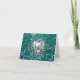 Teal Faux Glitter Diamond Heart Snowflake Holiday Card