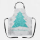 Cook and celebrate in style with this Teal Festive Christmas Tree Apron. Showcasing a classic Christmas tree illustrate with delicate white snowflakes and elegant flourishes, the design rests on a serene snowy background. A joyful Merry Christmas greeting in modern typography enhances the winter theme, making this apron a charming choice for holiday cooking, baking, or entertaining. Perfect as seasonal kitchen accents or thoughtful kitchen gifts, it’s a must-have for spreading festive cheer.