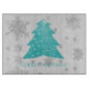 Prepare meals and snacks during the holiday season with a Teal Festive Christmas Tree Cutting Board. Cutting board design features a vibrant and festive Christmas tree adorned with falling grey and white snowflakes with a holiday greeting. Additional gift and holiday items available with this design as well.