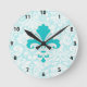 Teal Fleur de lis Round Clock