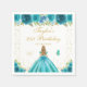 Teal Floral Blonde Hair Princess Birthday Party Napkin