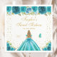 This elegant and glamourous sweet sixteen napkin features a beautiful princess with blonde hair and fair skin in a teal blue ball gown. The text combines handwritten script and modern sans serif fonts for a classy and sophisticated look. The floral arrangements, butterflies and gold confetti create the perfect blend of rustic and chic.