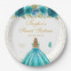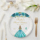 Teal Floral Blonde Hair Princess Sweet Sixteen Paper Plate