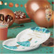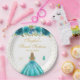 This elegant and glamourous sweet sixteen plate features a beautiful princess with blonde hair and fair skin in a teal blue ball gown. The text combines handwritten script and modern sans serif fonts for a classy and sophisticated look. The floral arrangements, butterflies and gold confetti create the perfect blend of rustic and chic.