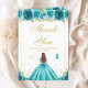 Teal Floral Brown Hair Girl Birthday Party Thank You Card