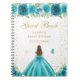 Teal Floral Brown Hair Princess Sweet Sixteen Notebook