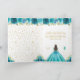 This elegant and glamorous sweet sixteen birthday card can be personalized with a name or title such as daughter, granddaughter, niece, friend etc. The design features a beautiful princess with brunette hair and fair skin in a teal blue ball gown. The text combines handwritten script and modern sans serif fonts for a classy and sophisticated look. The floral arrangements, butterflies and gold confetti create the perfect blend of rustic and chic.