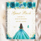 Teal Floral Brunette Hair Princess Guest Book