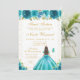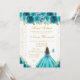 Teal Floral Brunette Hair Princess Sweet Sixteen Invitation