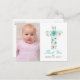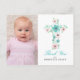 This one photo Baptism / Christening thank you card features a teal and pink floral watercolor cross with a touch of yellow, and greenery leaves and foliage. Add a personal message on the back of the postcard. Perfect for any religious event: First Communion, Baptism, Christening or Confirmation. For enquiries about custom design changes by the independent designer please email paula@labellarue.com BEFORE you customise or place an order.