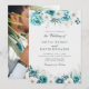 This teal floral custom photo botanical wedding invitation combines personalised imagery with soft watercolor wildflowers. The elegant layout balances romantic florals with clean typography for a refined and modern look.