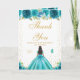 Teal Floral Dark Skin Girl Birthday Thank You Card