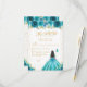 Teal Floral Dark Skin Princess Sweet Sixteen RSVP Card