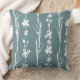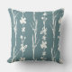 A farmhouse inspired teal pillow with painterly ivory flowers.
