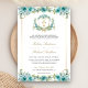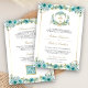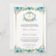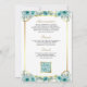 Teal Floral Gold Catholic Cross QR Code Wedding Invitation