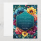 A dramatic, moody floral design bursts with vibrant blooms in deep teal, golden yellow, and rich magenta. This artwork evokes a sense of opulent romance and lush enchantment.