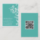Lovely teal blue design makes a statement! Get your swagger on with this smart QR code business card. Replace the QR CODE on the back with your own. Create your own for free at http://qrcode.kaywa.com save to your computer and upload to the back of this card. Fill in your personal details and replace the qr code with your own to make networking simple and fast. Anyone with a smart phone and qr reader can scan your business card and in only seconds you have shared your info. Text, URLS and lots more.