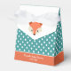 Cute Fox with Teal Blue and White Polka Dot Baby Shower Personalised Favour Box.