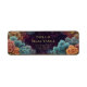 Add a touch of cosmic majesty to your envelopes with this breathtakingly intricate botanical and celestial layout. The design features a deep, moody background of purple nebula cloud patterns and shimmering stardust that creates an ethereal atmosphere. Striking clusters of teal galaxy coral and orange feathery fossil-like motifs anchor the corners with a rich, detailed texture. A luxurious ornate gold filigree border with swirling scrollwork frames the horizontal space, adding a layer of vintage sophistication. This return address label is a premier choice for celestial-themed weddings, mystical evening events, or high-end fantasy correspondence. It ensures your outgoing mail carries a sense of profound wonder and organic grace from the moment it is received.