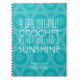 If you are shopping for gifts for someone in your life who loves to crochet this crochet journal will make a thoughtful present for them. The text reads A Day Without Crochet is Like a Day Without Sunshine against a teal background with concentric geometric circles. There is room to personalise with her name. Original Design Clare Swindlehurst (c)