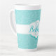 Enjoy your latte with a personalised Teal Glitter Monogram Latte Mug. Latte mug design features a teal glitter background with embellishment to add your name and monogram for personalisation. Glitter is artwork rendered and final item will not contain glitter. If you need assistance with any personalisation, please contact me directly.