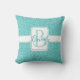 Teal Glitter Monogram Personalised Throw Pillow