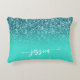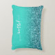 Teal Glitter Turquoise Ombre Modern Script Decorative Cushion