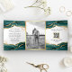 Teal Gold Abstract Ink QR Code Wedding Tri-Fold Invitation