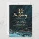 Teal and gold agate 21st birthday party invitation. Elegant modern design featuring turquoise watercolor agate marble geode background, faux glitter gold and typography script font. Trendy invite card perfect for a stylish women's bday celebration. Printed Zazzle invitations or instant download digital printable template.