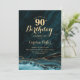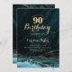 Teal and gold agate 90th birthday party invitation. Elegant modern design featuring teal blue turquoise watercolor agate marble geode background, faux glitter gold and typography script font. Trendy invite card perfect for a stylish women's bday celebration. Printed Zazzle invitations or instant download digital printable template.