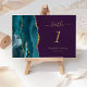 Teal Gold Agate Purple Wedding Table Number