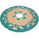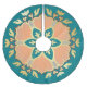 A beautiful tree skirt of teal, gold and peach in an ornate mandala design.