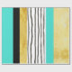 Modern colorblock stripes pattern with turquoise teal blue, gold effect, and watercolor stripes in dark grey and white custom wrapping paper. Add your text to this cute paper to make a unique gift wrap.