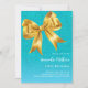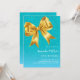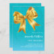 A modern teal and blue faux glitter background, decorated with a large golden bow. Personalise and add a name and party details.