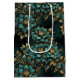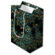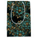 Teal & Gold Dark Grunge Flowers Medium Gift Bag