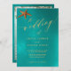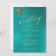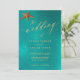 Elegant minimalist starfish under the sea underwater aqua teal blue summer beach budget all in one destination wedding invitation with your custom engagement photo, scanning code to website for guest details and RSVP online, and a modern stylish "the wedding of" calligraphy script.