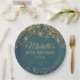Teal Gold String Lights Glitter Adult Birthday Paper Plate