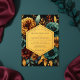 A dark, opulent backdrop showcases richly hued blooms in deep teal and warm golden tones. Lush foliage and delicate berry clusters add depth to this romantic, twilight-inspired botanical design. Evokes a sense of moody elegance for a special occasion.