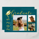 Celebrate your graduate's big accomplishment with this stylish teal grad cap photo foil graduation announcement. Featuring elegant gold foil accents, a bold grad cap design, and space for multiple photos, this card is perfect for showcasing your graduate's achievements. Ideal for high school, college, or university graduations, this modern announcement combines sophistication with a personal touch.
