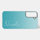 A custom personalised Samsung phone case in a modern teal blue gradient design. The trendy handwriting script font adds a unique touch when adding your name.