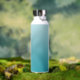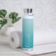 A custom personalised stainless steel water bottle in a modern soft teal gradient design. The trendy handwriting script font adds a unique touch when adding your name.