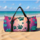 This colourful pattern duffel bag showcases a captivating teal and blue gradient background adorned with multiple shades of coloured paw prints. It's a stylish and versatile travel gear piece, ideal for any pet lover.