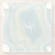 Teal Green Agate Marble Abstract Name Monogram Glass Coaster