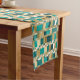 Teal Green And Gold Geometric Pattern With Flowers Medium Table Runner