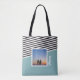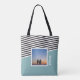 Teal Green and Striped Pattern Personalised Photo Tote Bag