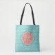 Teal Green Art Deco Fish Scales Pink Monogram Name Tote Bag