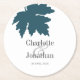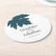 Teal Green Autumn Maple Leaf Wedding/Engagement Round Paper Coaster