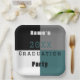 Teal green black and white custom graduation party paper plate