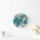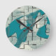 Teal Green Blue Abstract Pattern Round Clock