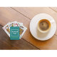 Customisable playing cards with teal green background. Customise it by typing your business name and uploading your business logo. Customise it and include it in your promotional products, giveaway items or gifts to your customers or clients, a marketing strategy to advertise your business or to promote your brand name. Customisable playing cards that you can use to build brand name awareness. Please check the appearance after typing your business name and uploading your business logo. If the appearance is pleasing to you, you can place your order now. If you need to resize and reposition your business name and logo to fit on this playing card or on the style that you will choose, please adjust in the design tool. You can change the background colour, font colour and font style in the design tool. Available on poker, tarot and more.